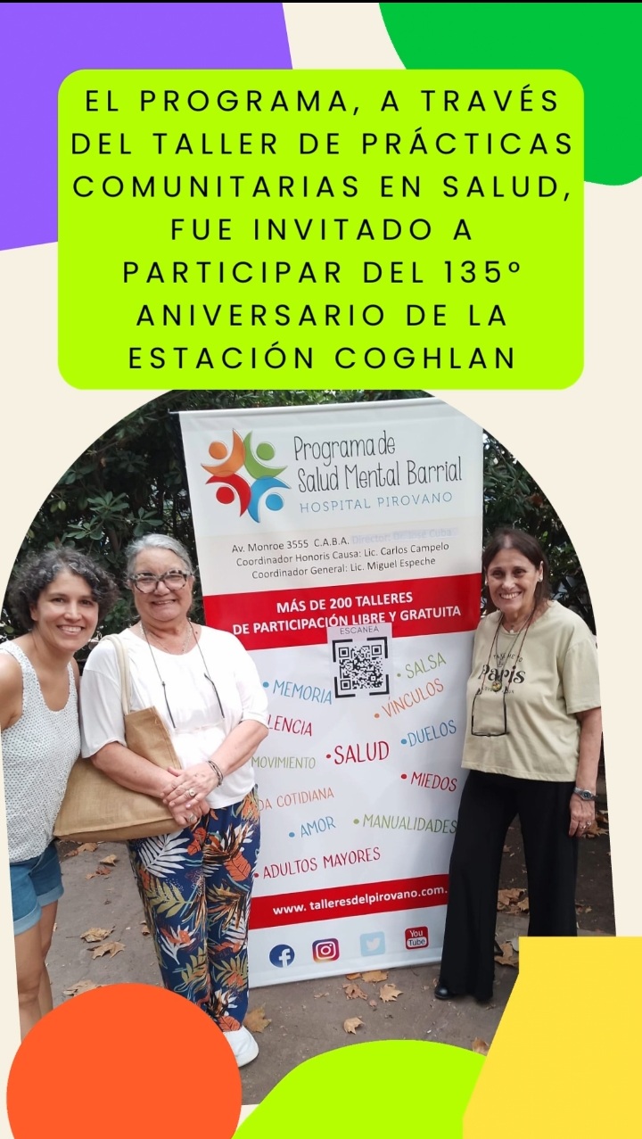 El pasado lunes 16 de Febrero, el Programa de Salud Mental Barrial del Hospital Pirovano, a través del Taller de Prácticas Comunitarias, fue invitado por la Comuna 12, la Junta de Estudios Históricos Coghlan, la Asoc. Civil y Biblioteca Popular Amigos de la Estación Coghlan y el Club El Tábano, a participar de los festejos del 135° Aniversario de la Estación Coghlan.